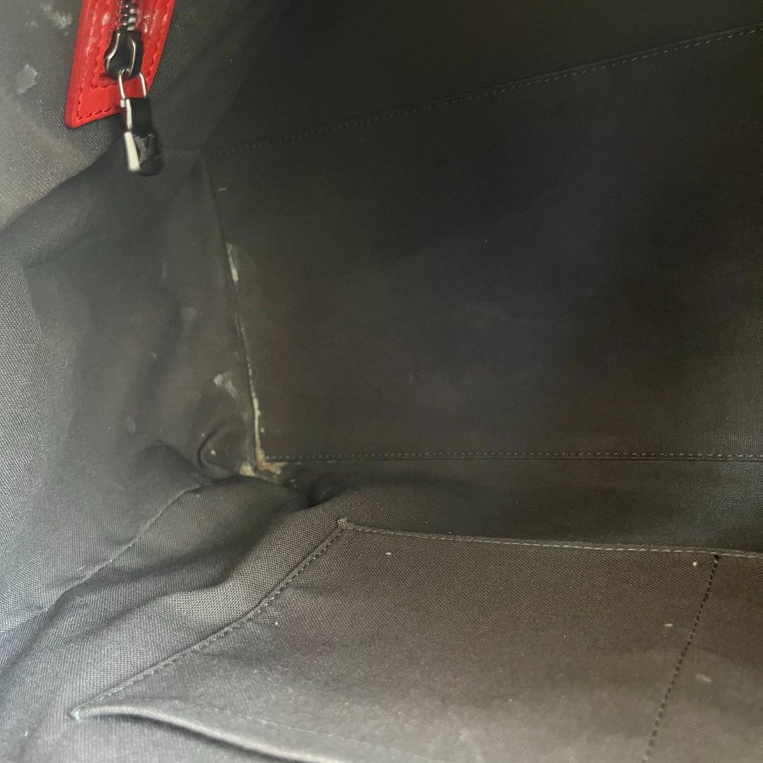 Condition Desc. Gently used, Stains along bottom, scuffed corners, pen mark on one side of bag. Lock but no key
