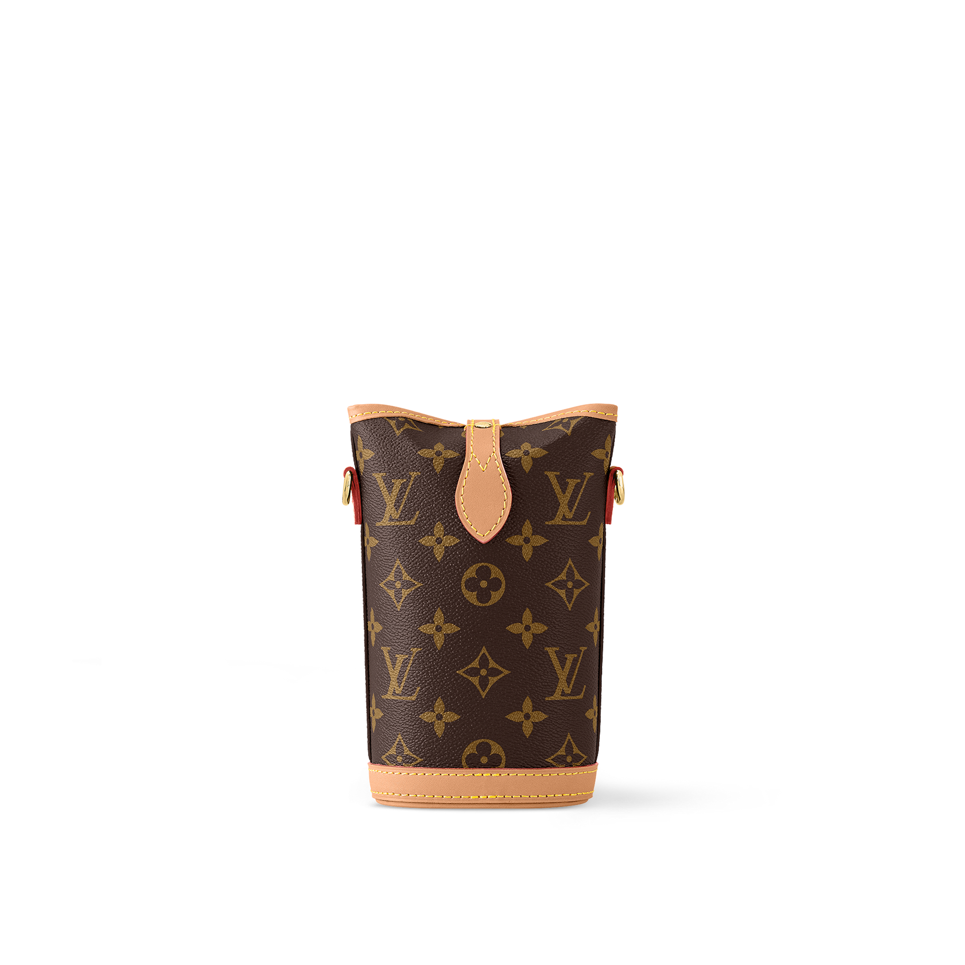 The Fold Me pouch in Monogram canvas and natural cowhide leather combines a vintage aesthetic with an on-trend functionality. Its design contrasts an oval base with a rectangular body, finishing with a folding, magnetic closure. Though small in size, it is large enough to hold everyday essentials, while its removable, adjustable leather strap offers different carry options.