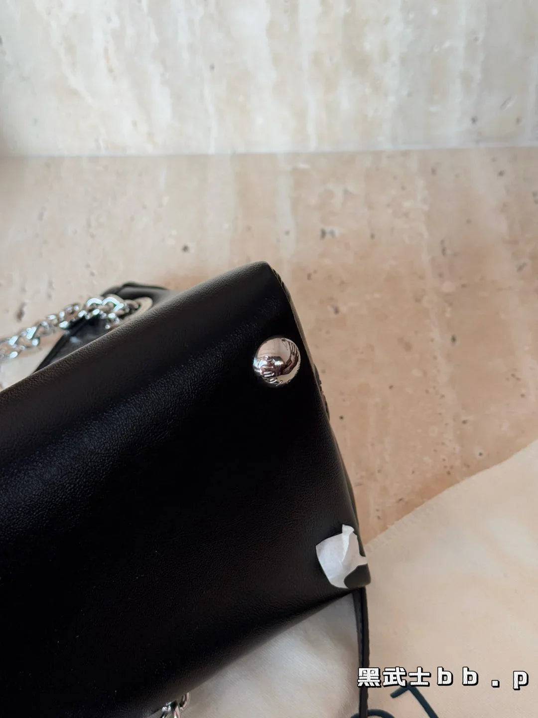 Louis Vuitton LV Black Tote Bag Slidable Metal Chain 26x17cm