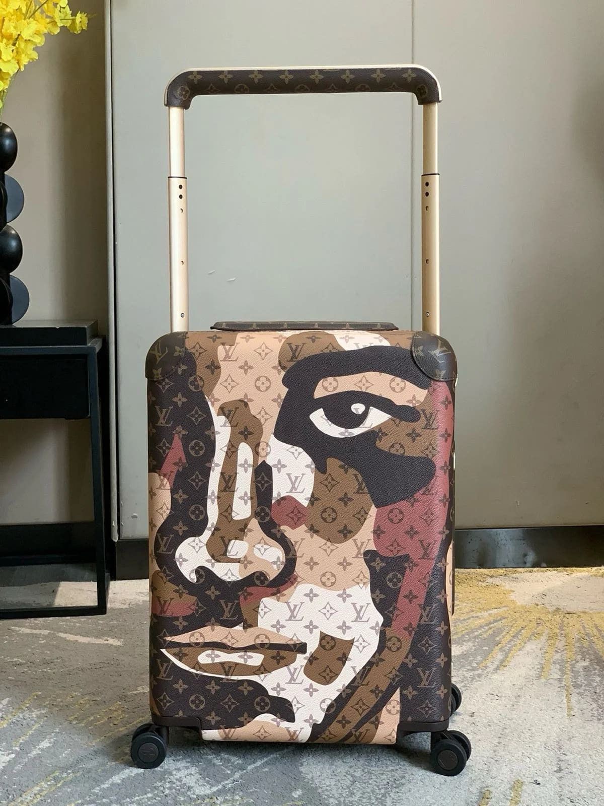 This avant-garde take on the classic Horizon suitcase is inspired by faded brown. Monogram canvas, in a rich shade of beige, contrasts with a light-colored pattern, evoking the dynamic glow of campfire flames. This unique effect transforms a practical travel suitcase into a creative model, ideal for men with sophisticated taste.
