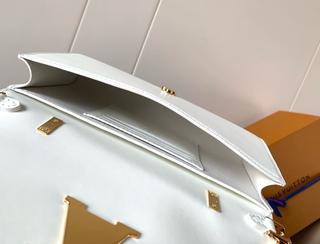 A new model to the iconic Capucines line, the sleek Wallet On Chain will make a statement day or night. With smart interior organization, it is crafted from soft and shiny calf leather and adorned with a Louis Vuitton Monogram Flower magnetic closure. The set of three gold-toned chains is removable, offering multiple carry options.