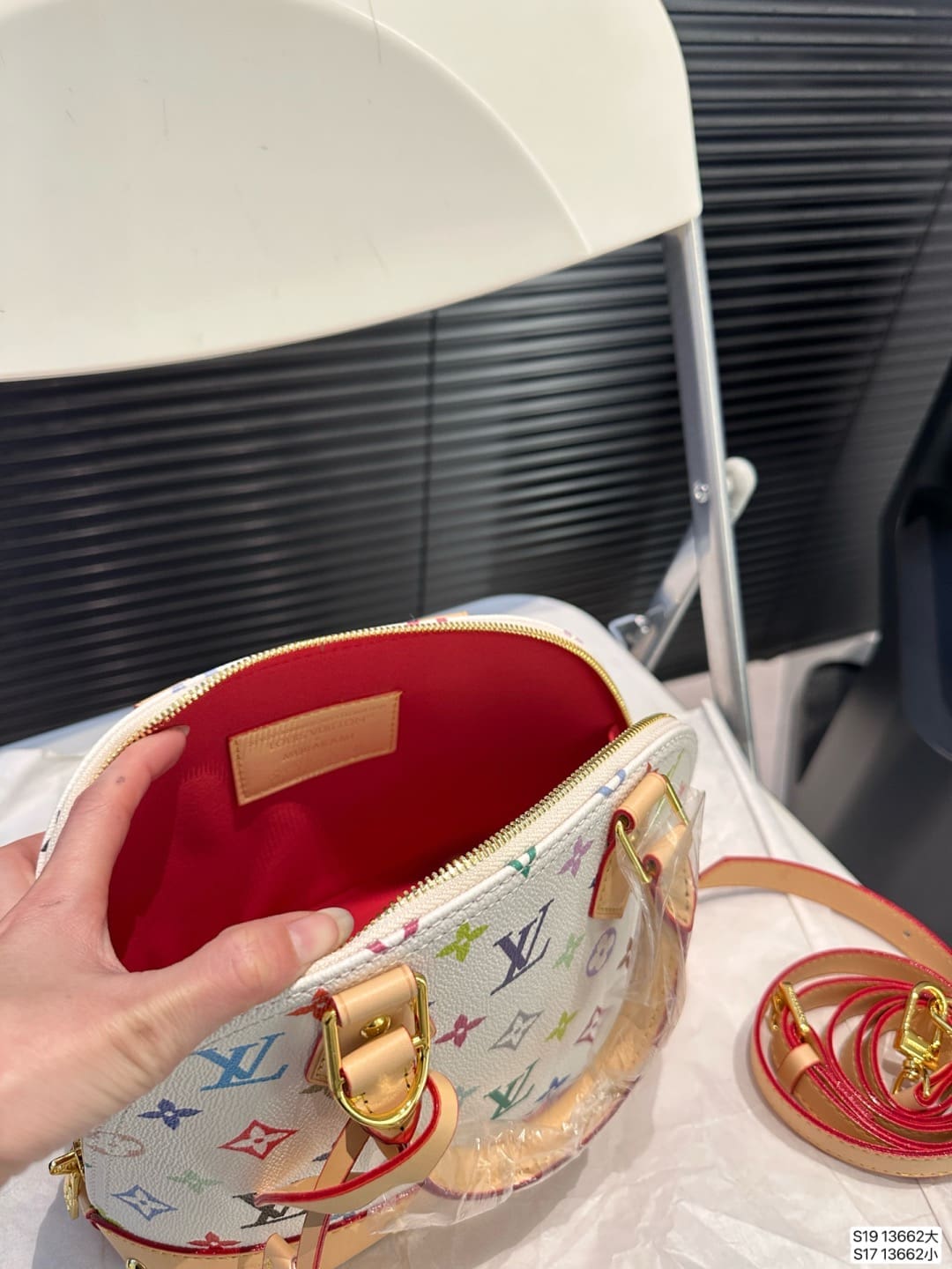 This Alma BB bag exudes the joyful style of the Louis Vuitton x Takashi Murakami collaboration, and cleverly recalls the Art Deco design of the 1930s. The Monogram coated canvas renders the playful tones of Takashi Murakami’s pen, and the Toron handles, bag base, removable shoulder strap and LV x TM key bag are integrated with classic cowhide leather elements.