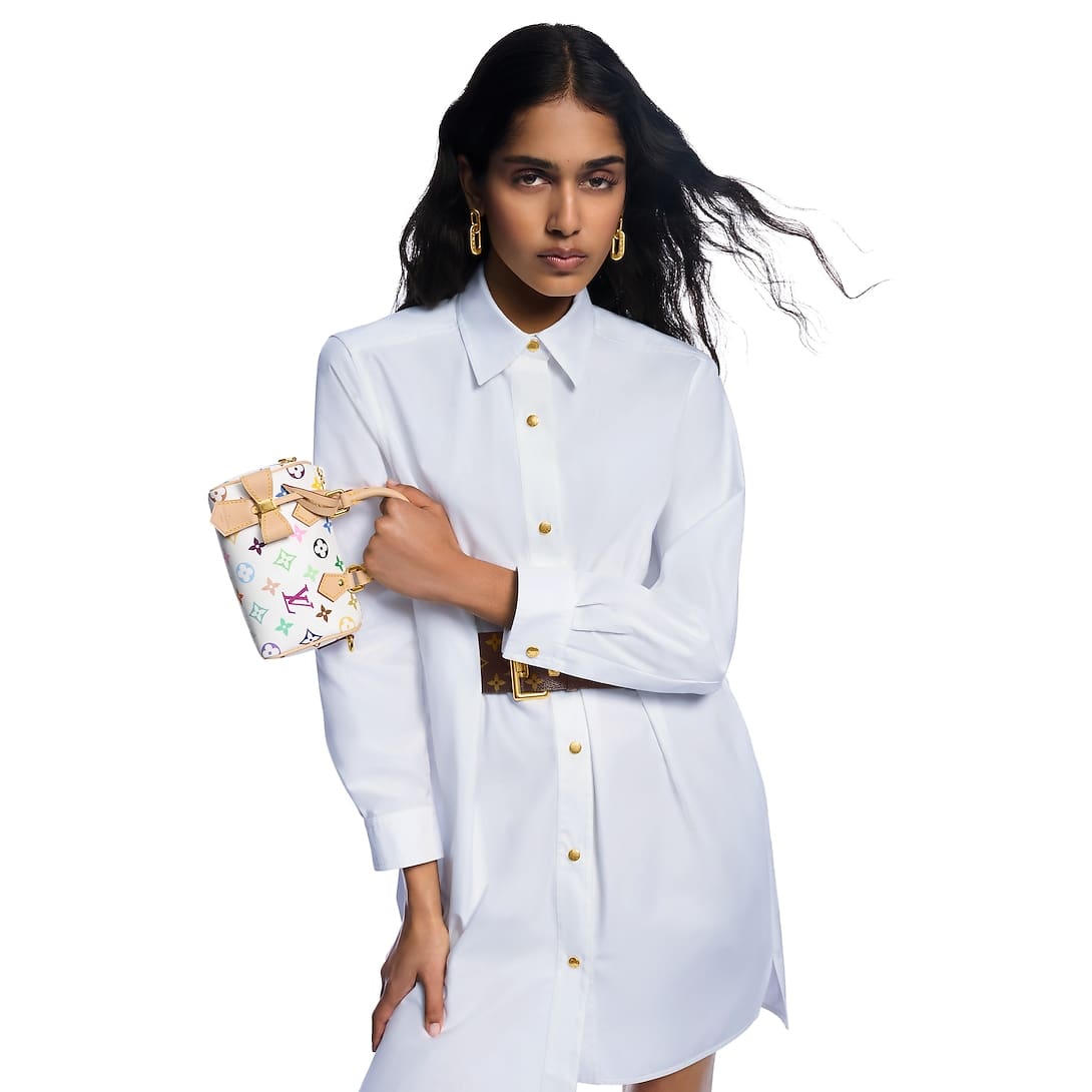 The scaled-down Nano Speedy makes a playful statement in Monogram coated canvas, which has been reworked in upbeat tones as part of the re-edition of the Louis Vuitton x Murakami collection. Natural cowhide leather trims add a timeless touch, as do two Toron top handles and a gleaming golden padlock in homage to the House’s travel heritage. Complete with a removable, adjustable strap and an exclusive LV x TM keybell.