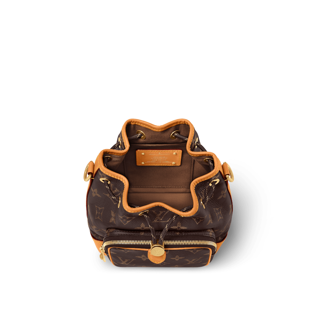 Pharrell Williams drew inspiration for the Noé Cargo from the original Noé, created in 1932 to carry champagne bottles. Crafted from calfskin with a Monogram print, it features a spacious front pocket in addition to its main compartment. It is signed with a removable metallic tag evocative of the plaques found inside the House’s original trunks.