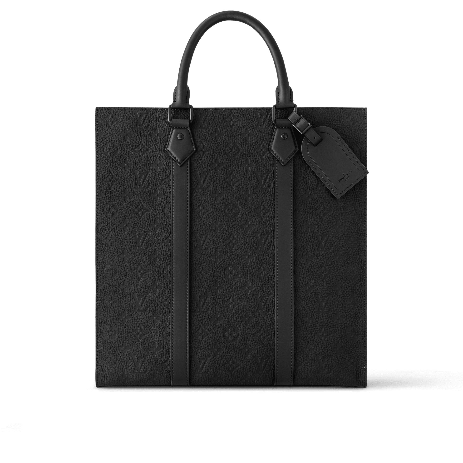 A spacious carryall, the Sac Plat in Monogram-embossed Taurillon leather combines functionality with style. The bag’s straight edges and right angles, leather side bands, and rolled-leather top handles make it eye-catching. A removable and adjustable strap enables shoulder carry. The padded compartment is perfect for a laptop.