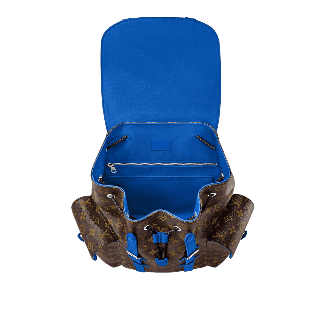 The House’s classic backpack, the Christopher MM, is made from Monogram Macassar canvas with colored-leather trim that emphasizes the bag’s rugged lines. The two side pockets give convenient access to often-used items while the roomy main compartment boasts an iPad pocket, a zipped pocket, and two flat pockets to keep everything in place.