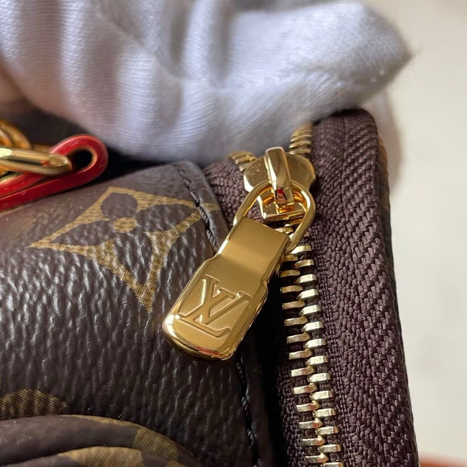 The Mini Bumbag in Monogram canvas is Louis Vuitton’s feminine interpretation of the on-trend bumbag format. Designed for versatility, it features a removable, adjustable strap in the House’s emblematic natural leather, as well as a removable gold-tone chain, which can be functional or decorative. The bag has a zipped main compartment and a zipped front pocket with an embossed leather tag.