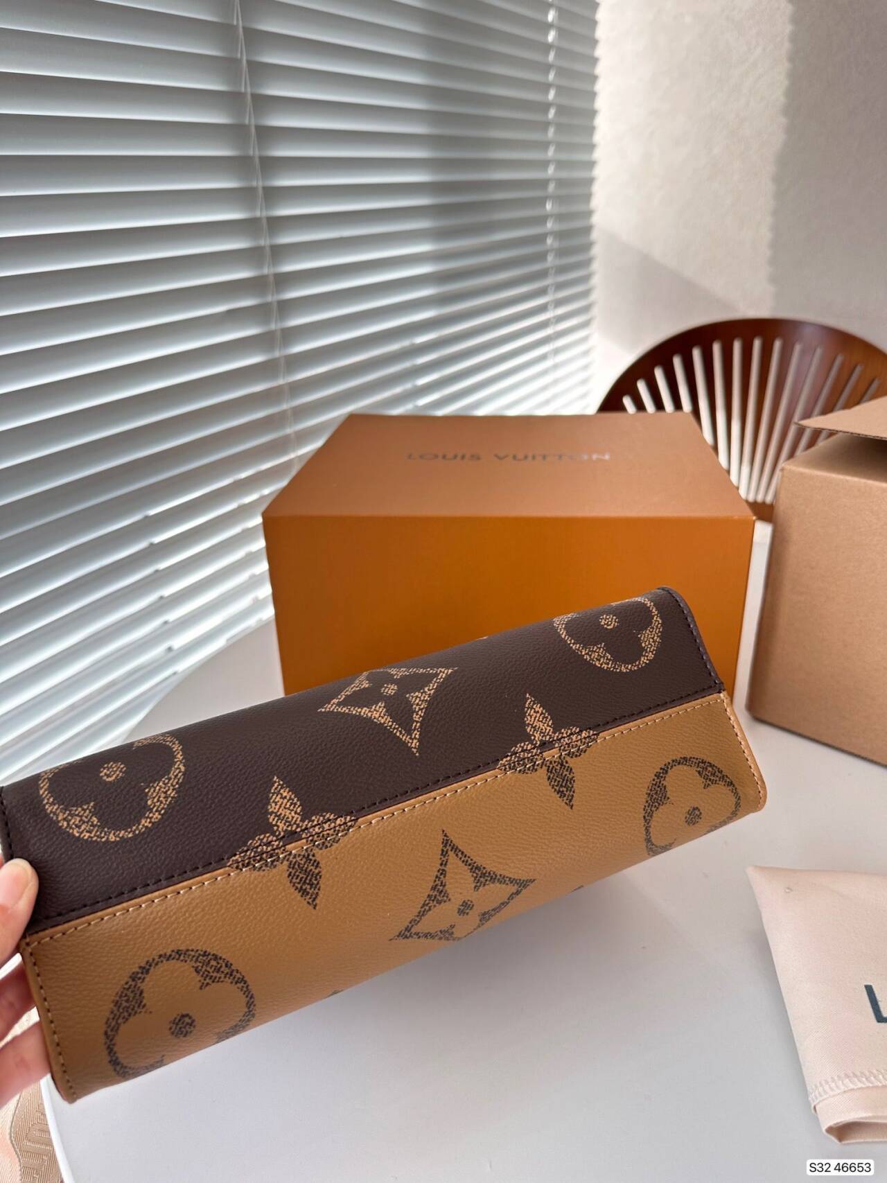 This OnTheGo tote bag combines Giant Monogram and Monogram Reverse canvas to reinterpret the ample configuration of East West. The detachable round coin pouch is richly detailed, while the Toron top handle and detachable wide shoulder strap allow for multiple carrying options.