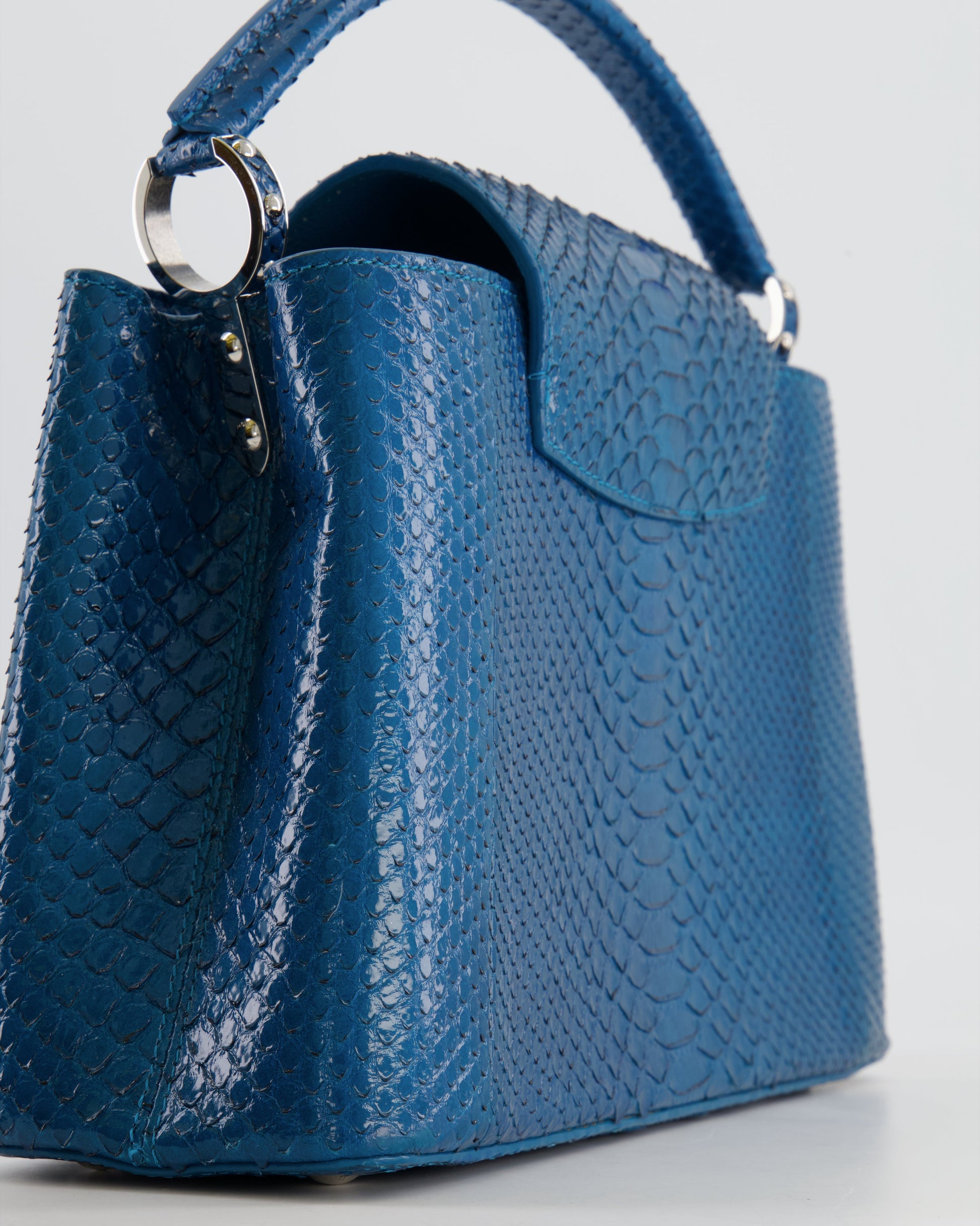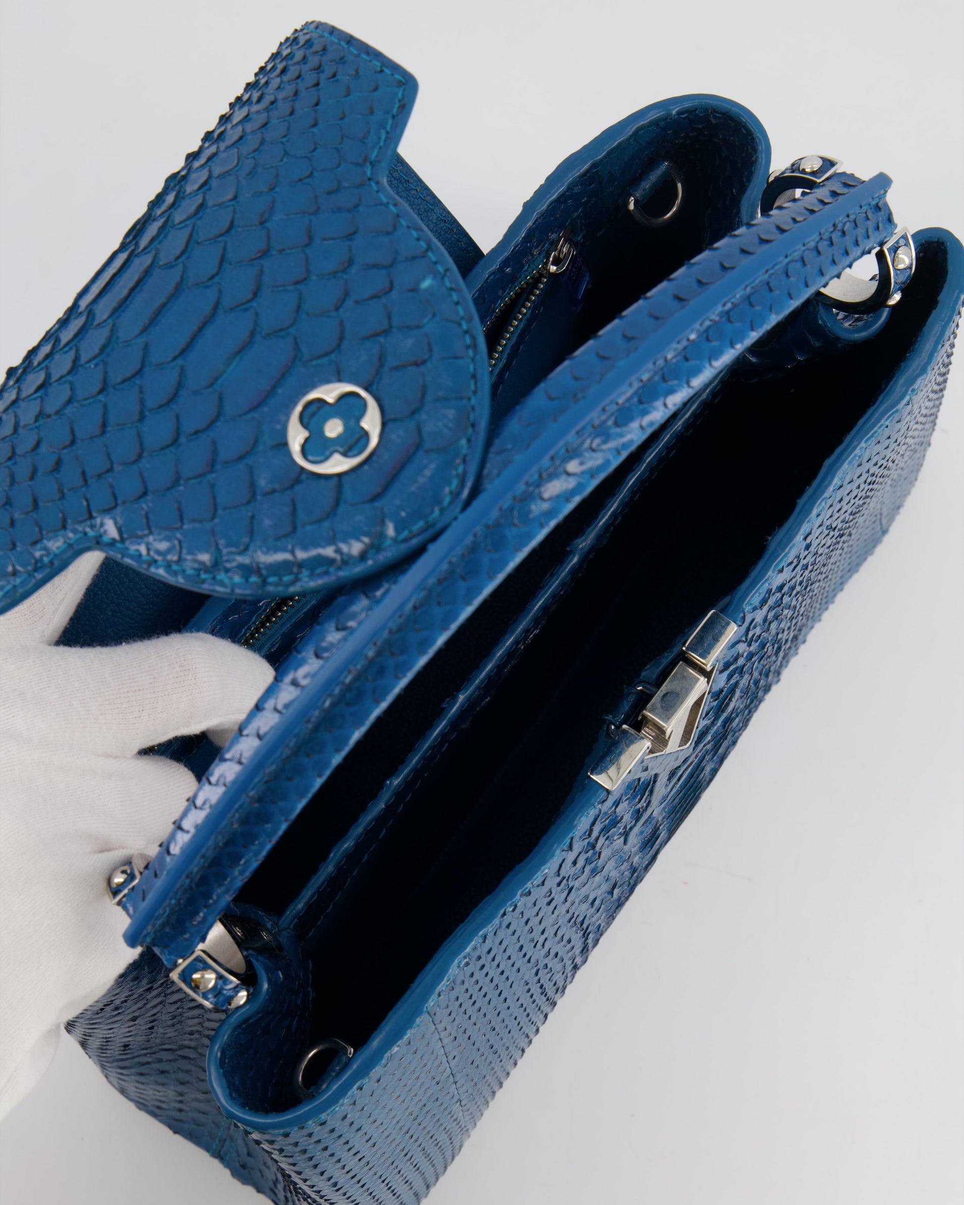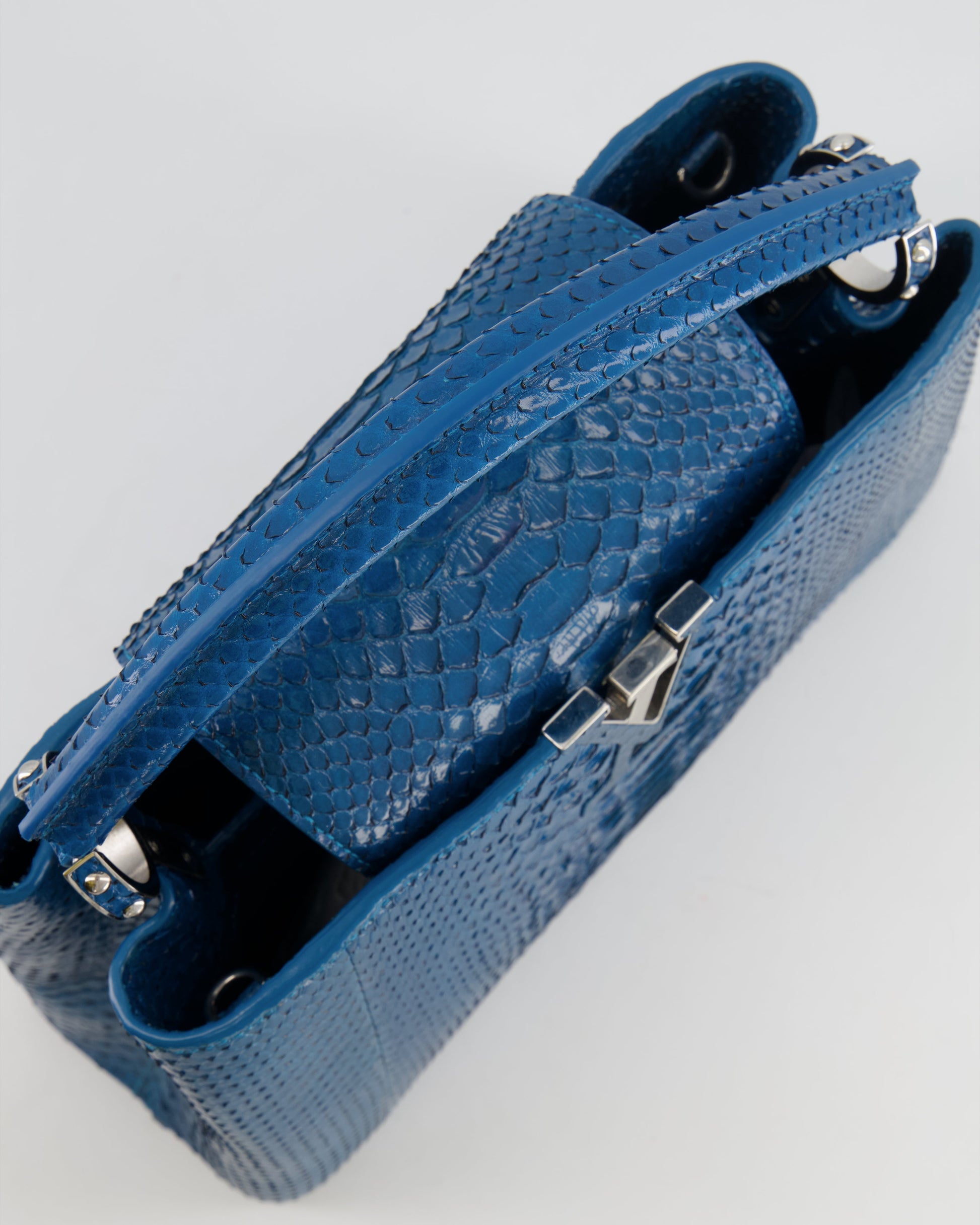 Louis Vuitton Peacock Blue Capucines MM Bag in Python Leather with Silver Hardware