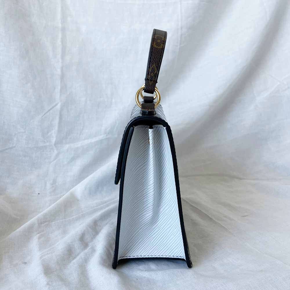 Description : Louis Vuitton Spring Street Handbag, featuring debossed Monogram Vernis patent cowhide leather, Monogram coated canvas and Epi leather trim, Microfibre lining. Comes with removable Epi leather name tag and detachable crossbody strap