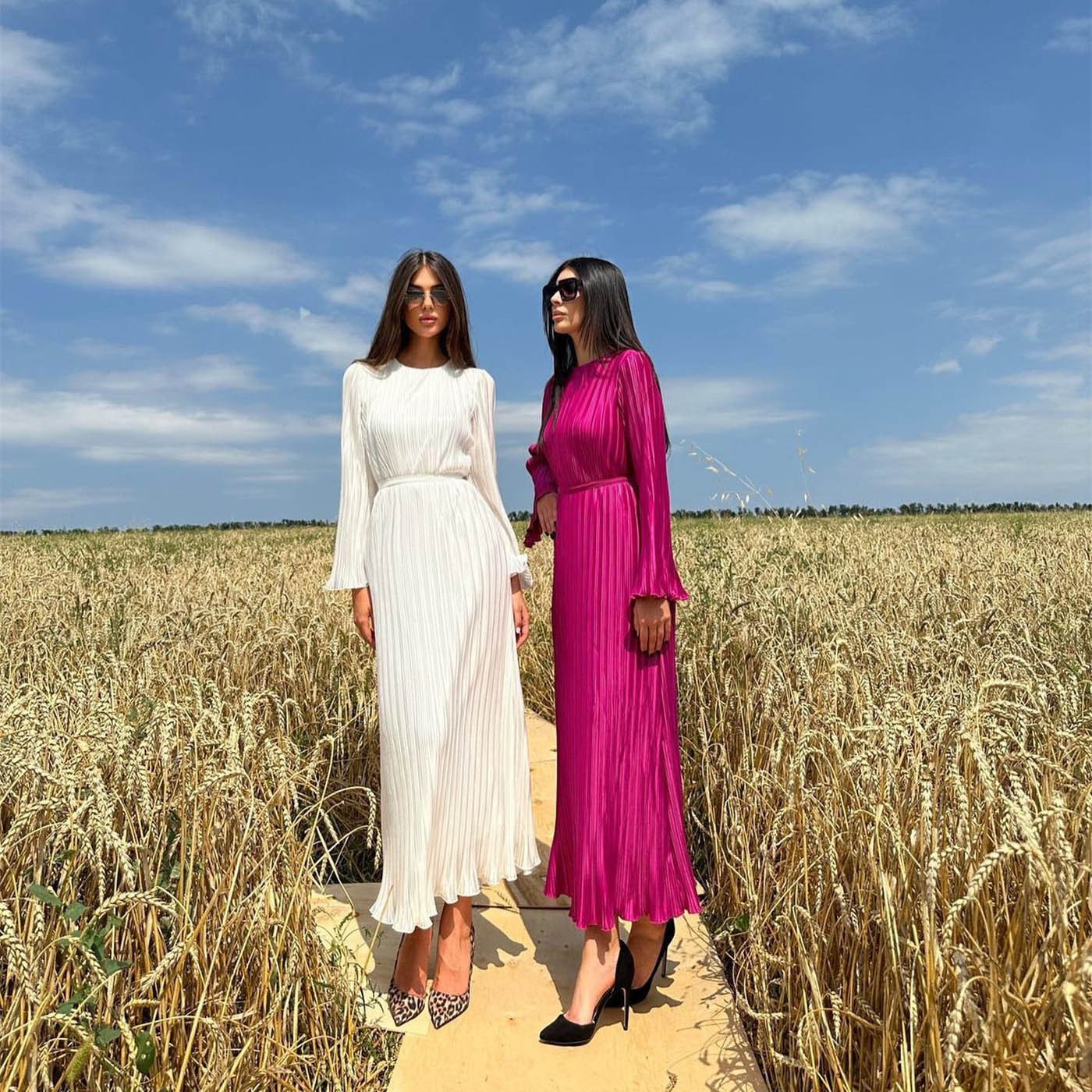 The flowing fabric drapes gracefully, ensuring you move with ease and confidence. The pleats not only enhance the aesthetic appeal but also provide a flattering silhouette, making this dress suitable for all body types.