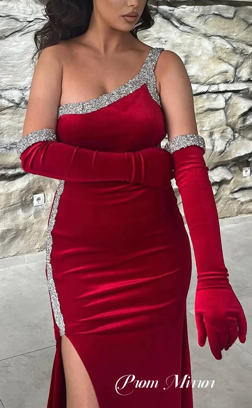 Luxury Beaded One Shoulder Bodycon Prom Dresses
