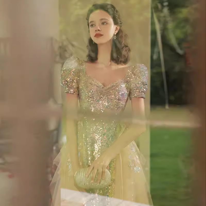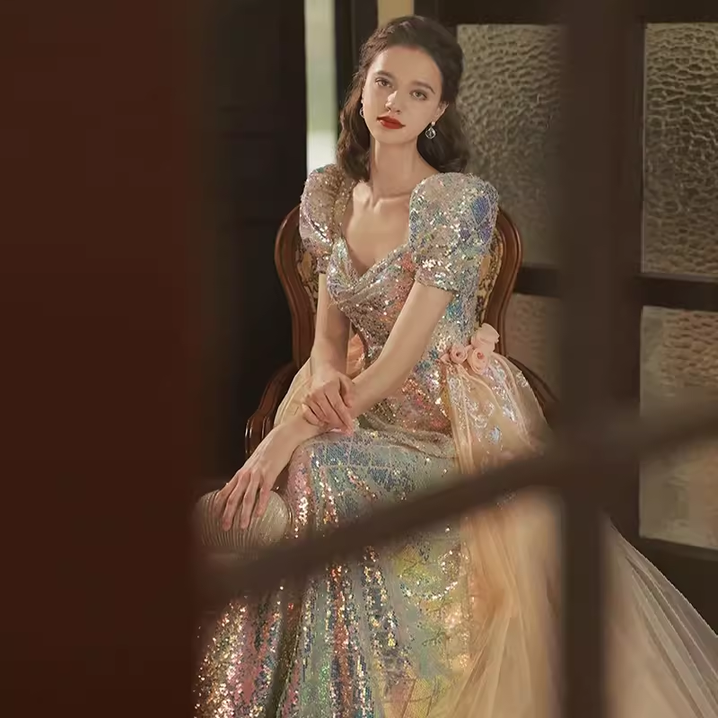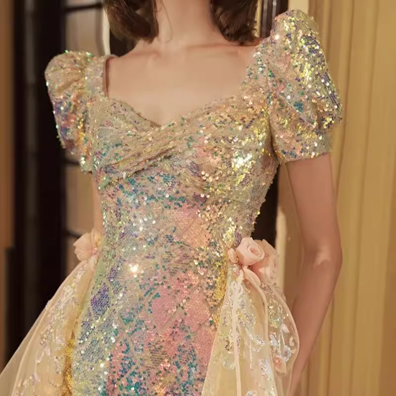 Mermaid Gold Sequin Prom Dress Long Prom Dresses P544