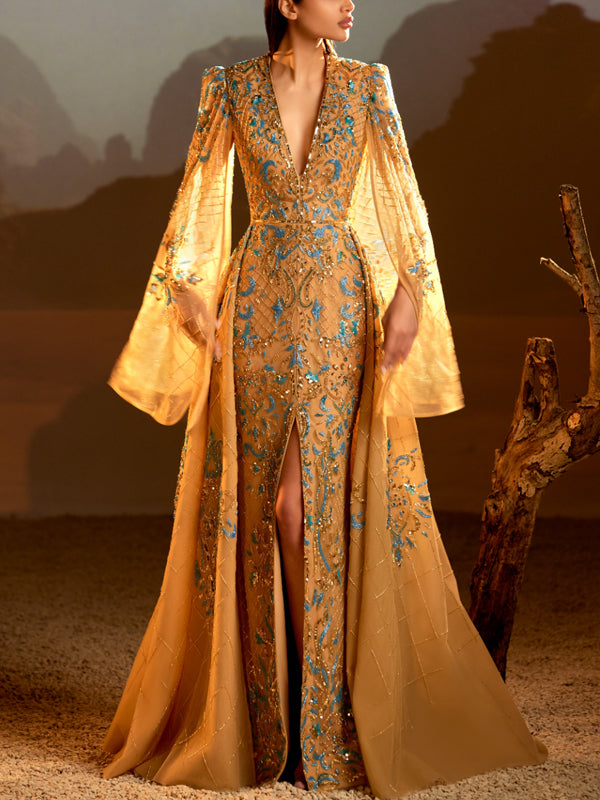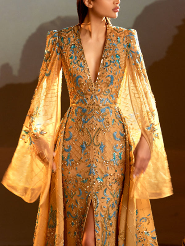 Mermaid High Neck Satin Ruffle Gown