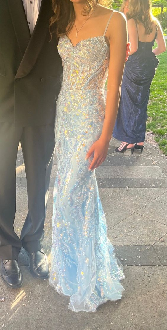 Mermaid Light Sky Blue Long Sequin Prom Dress 21st Birthday Outfit P1378