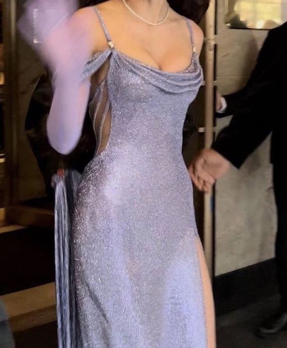 Sparkly Sequins Spaghetti Straps Sequin Side Slit Prom Dress cg25318