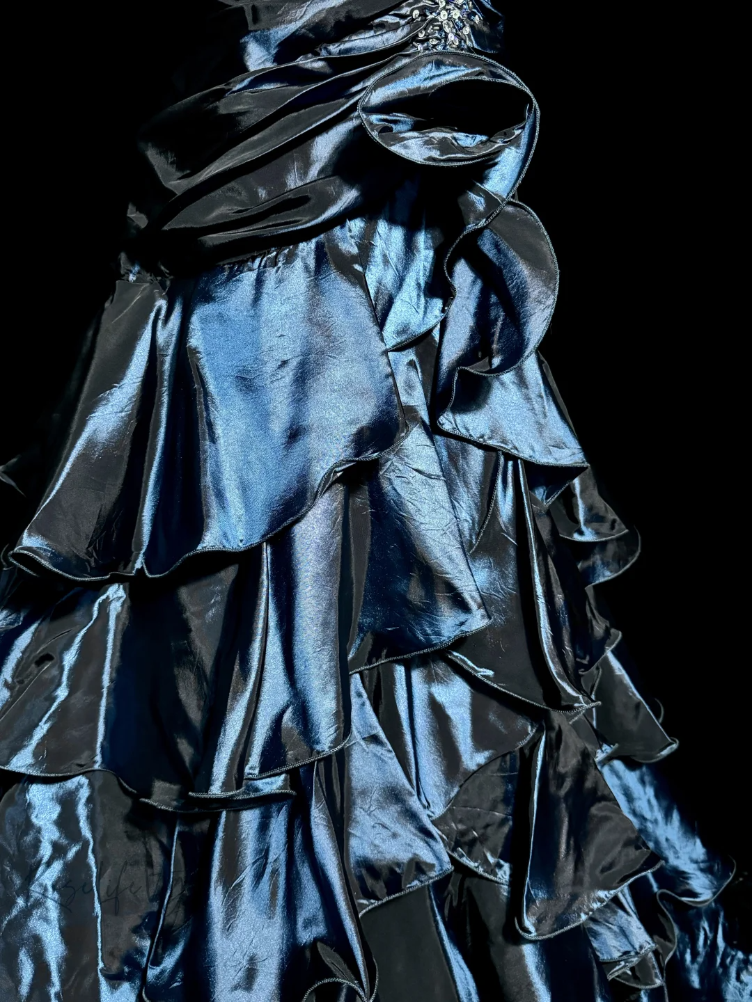 Vintage Mermaid Sweetheart Navy Blue Taffeta Long Prom Dresses Party Dress Birthday Outfits Graduation Dresses W838