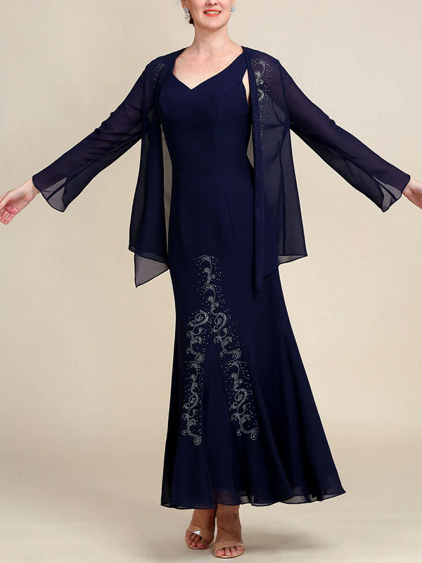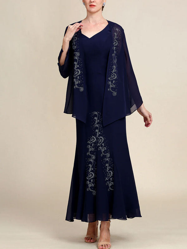 Mermaid Two Piece Sparkly Beaded Mother of the Bride Dress