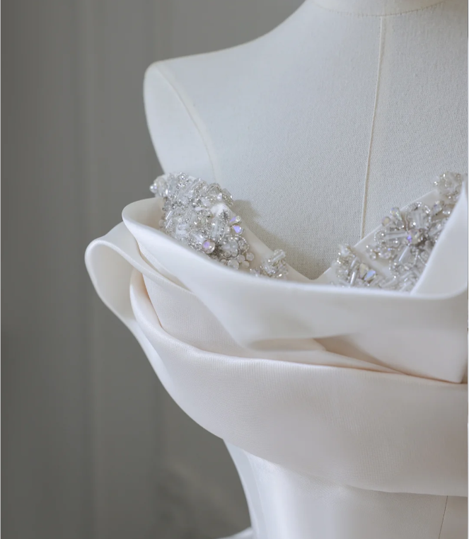 Minimalist Strapless Satin Elegant Floor-Length Wedding Dress P2577
