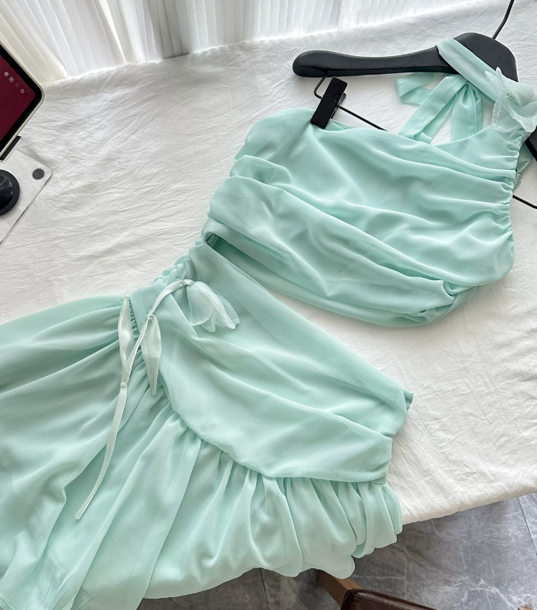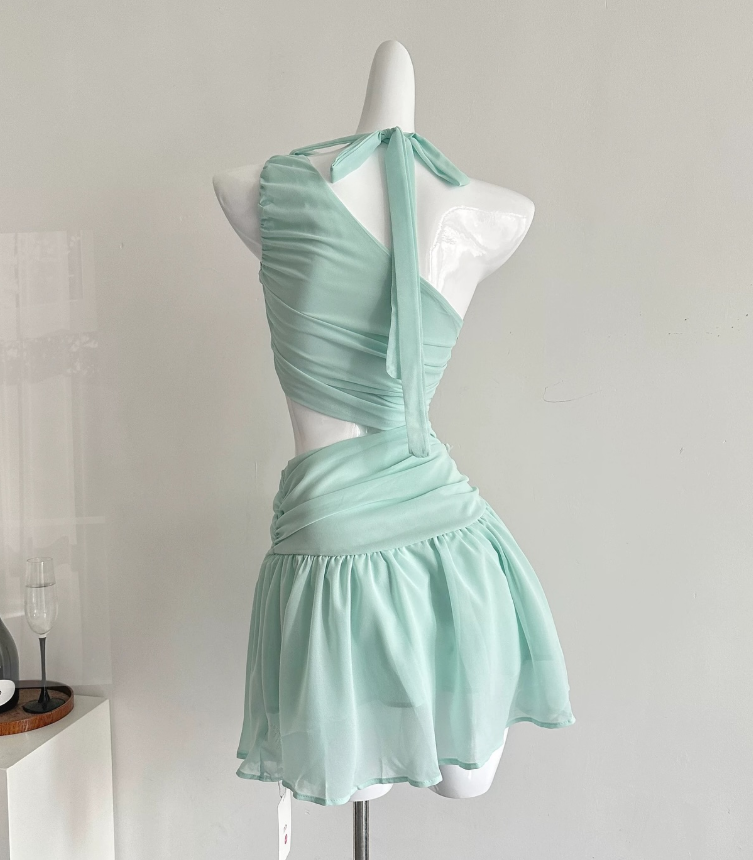 Mint Green A Line Halter Flower Chiffon Short Homecoming Dress Cocktail Dress SH3050