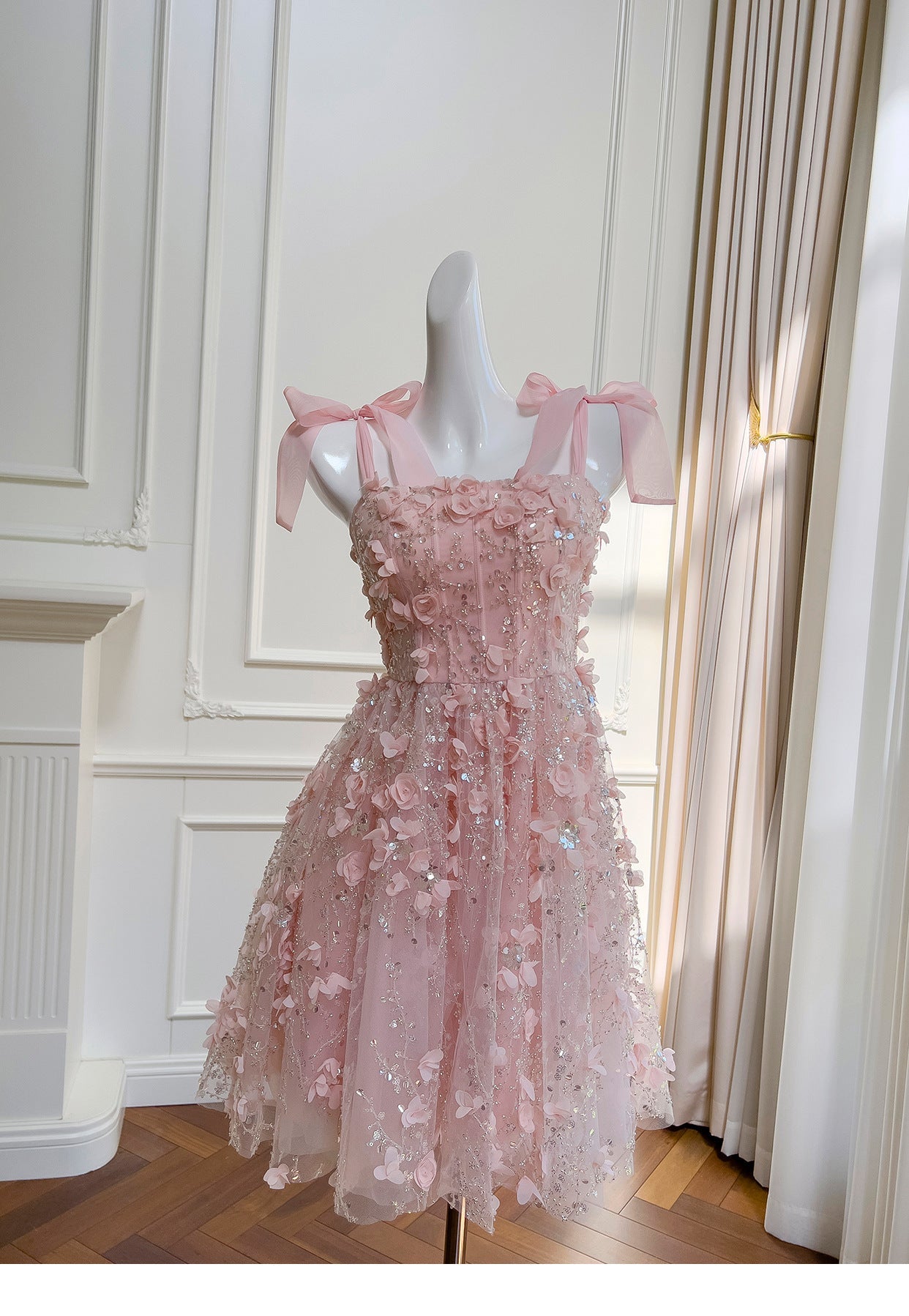 Modest A Line Spaghetti Straps Pink Sequin Formal 8th Grade Homecoming Dresses Middle School Short Birthday Gowns Graduation Dress Hoco Outfits DH2104