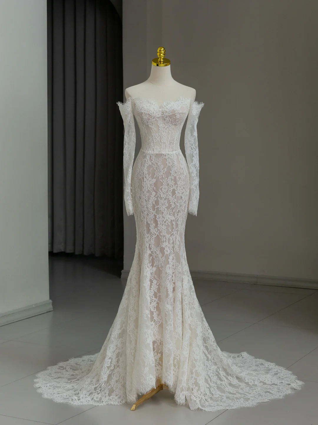 Modest Bridal Gown Mermaid Off The Shoulder White Long Sleeves Lace Wedding Dresses Elegant Bridal Gowns DH1138