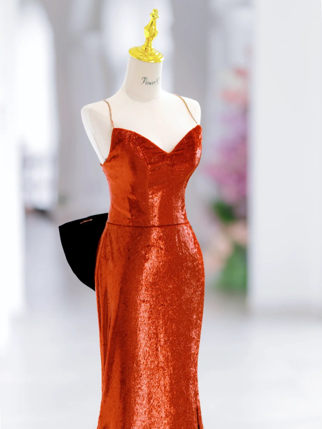Modest Mermaid Spaghetti Straps Sequin Long Slit Evening Party Gowns Evening Dress Special Formal Dresses Prom Dress DH2796