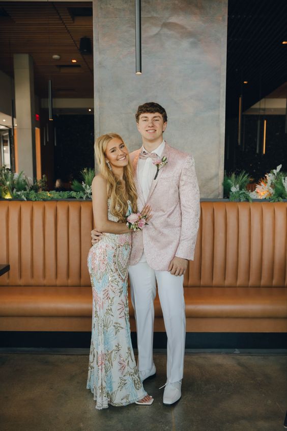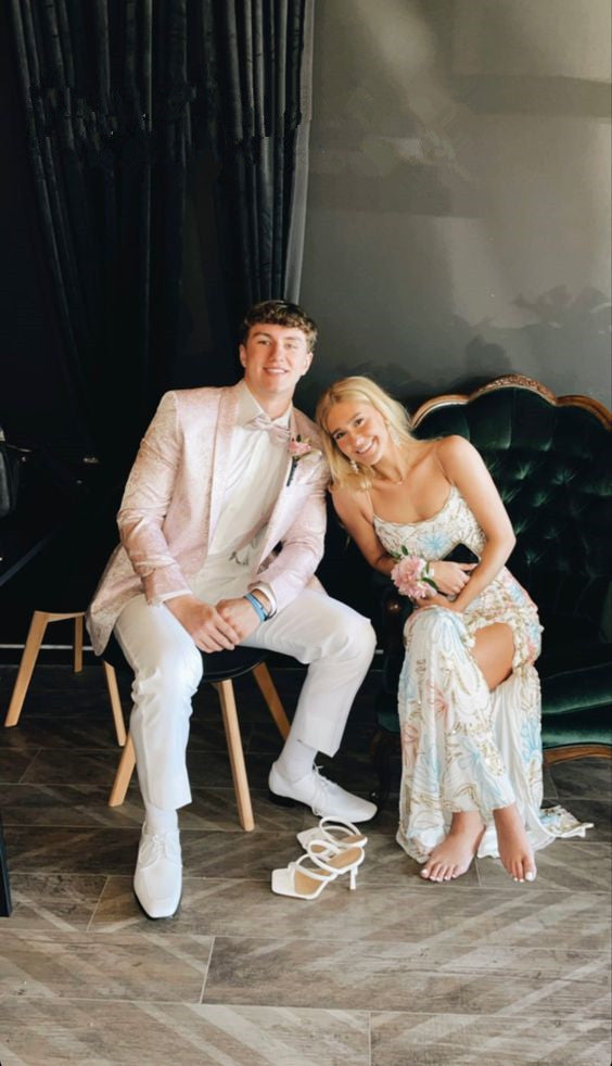 Modest Sheath Straps Sequin Slit Prom Dresses P1221