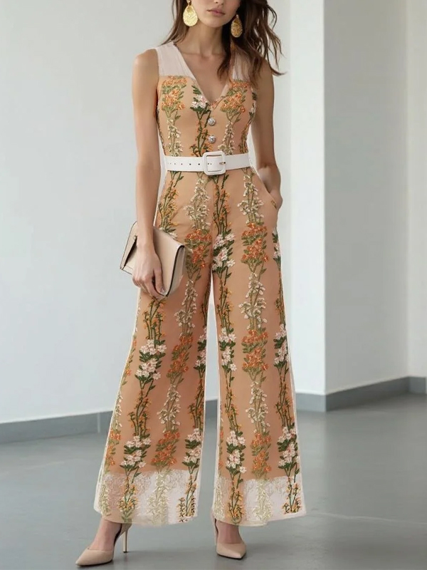 Morden Regular Fit Floral Embroidery Jumpsuit With Belt