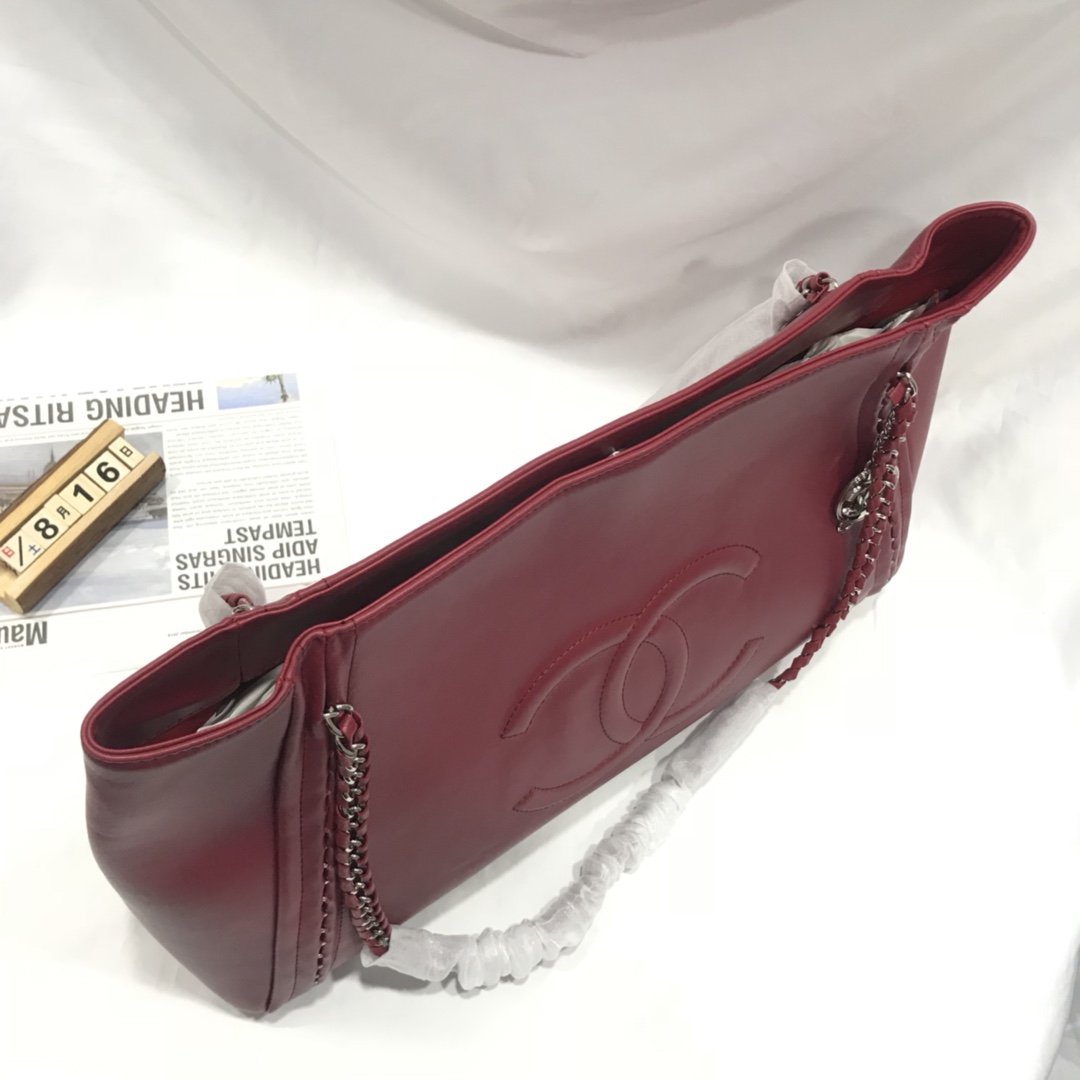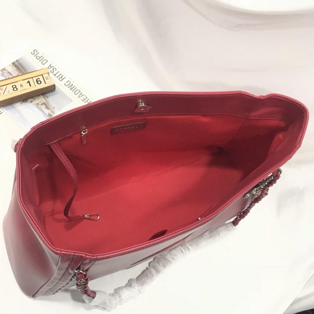 CHANEL RED LARGE LUXURY LIGNE SOFT CALFSKIN TOTE BAG