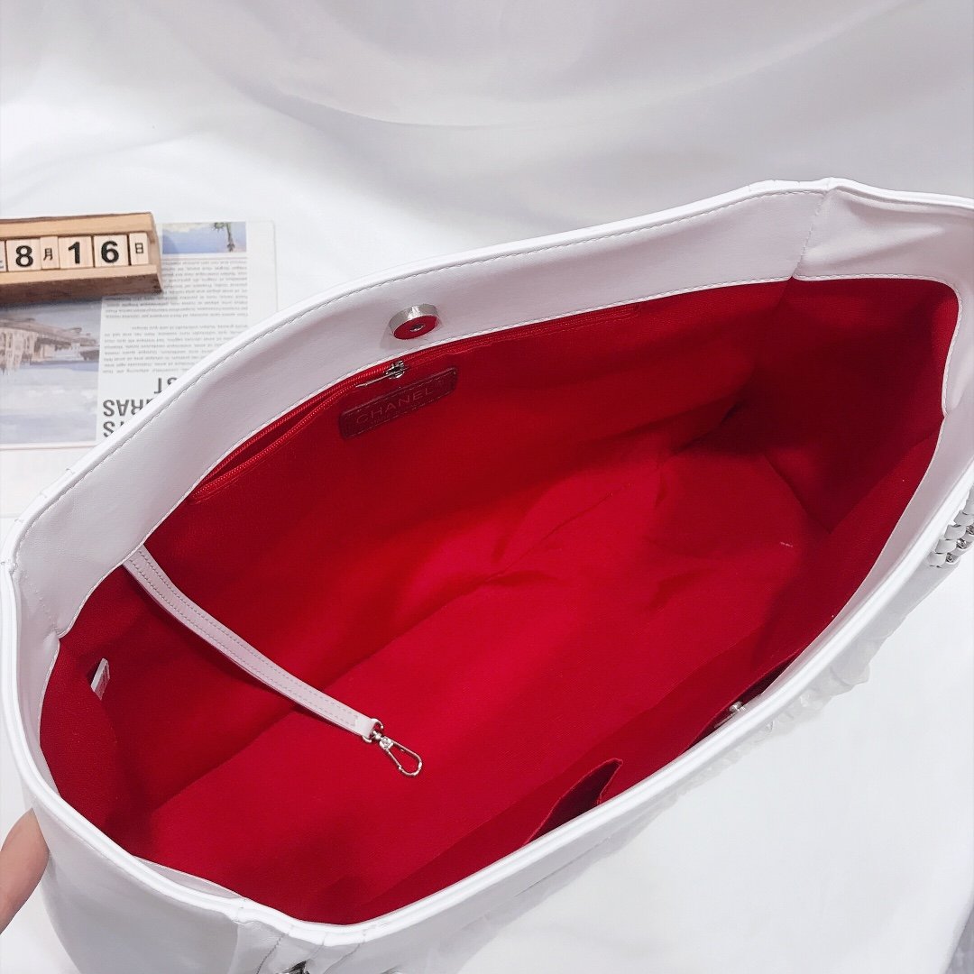 CHANEL CAVIAR MEDIUM STUDDED DEAUVILLE WHITE