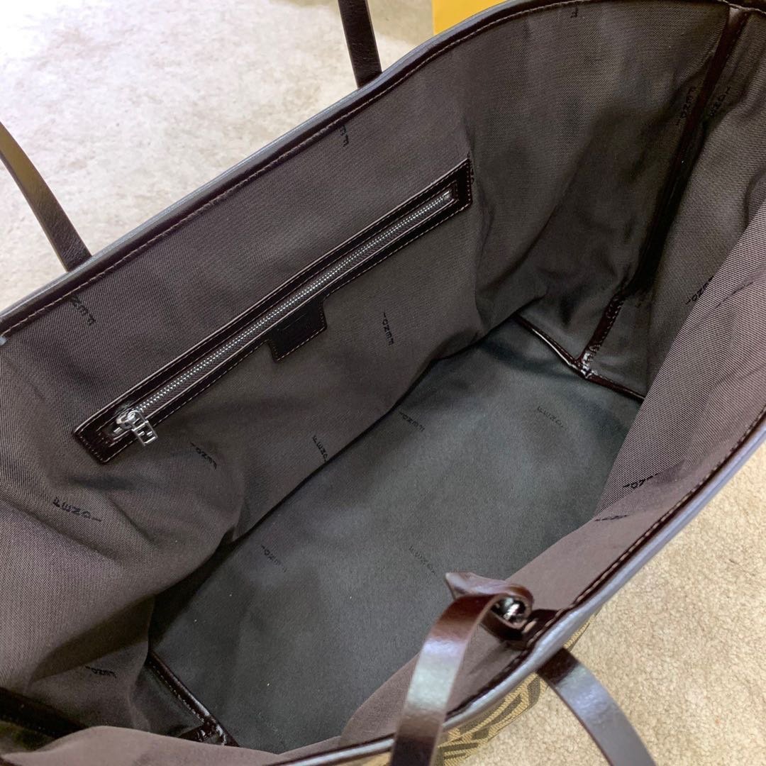 FENDI ZUCCA TOTE BAG IN BROWN AND BLACK WITH GOLD HARDWARE