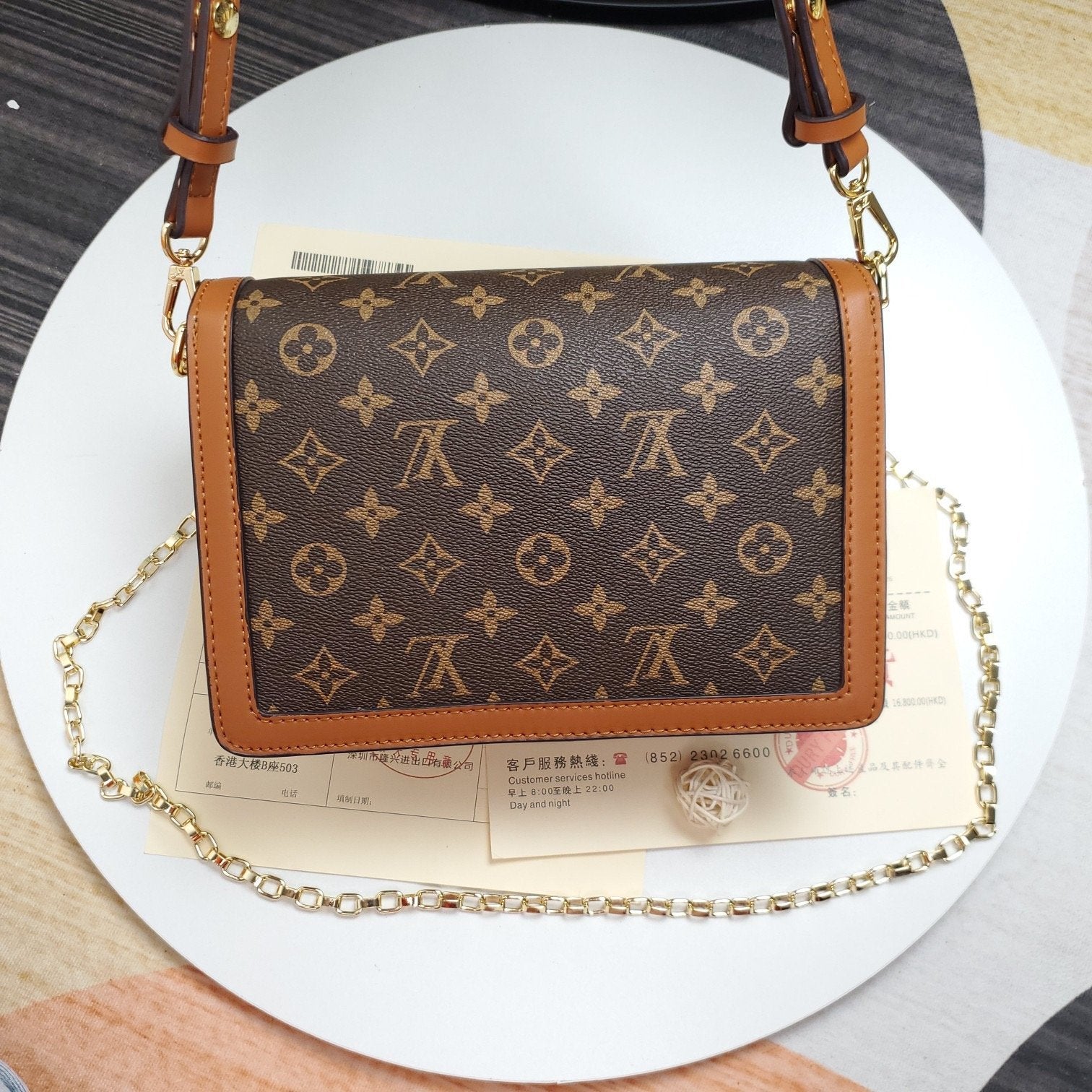 Includes Shipping bags, dustbag sleeper, care manual, booklet, tag.