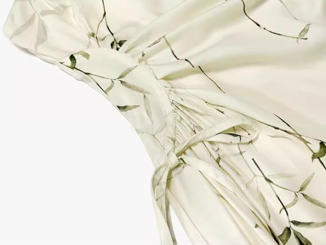 New Chinese bamboo print satin pleated waist suspender dress ED0360
