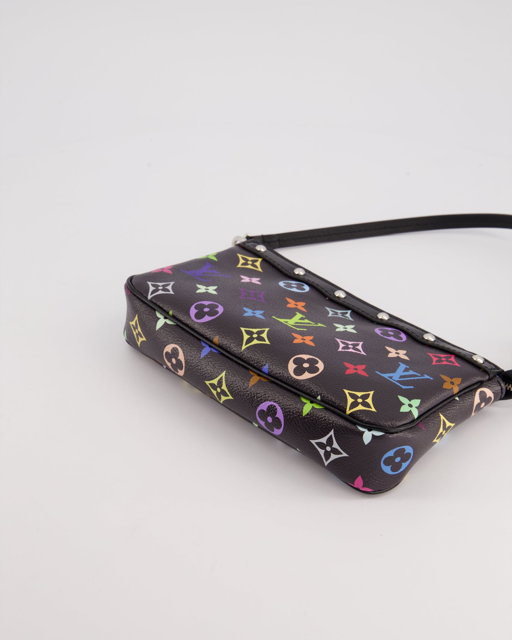 *NEW* Louis Vuitton X Takashi Murakami Black Pochette Accessories Bag in Coated Canvas & Calfskin Leather with Silver Hardware