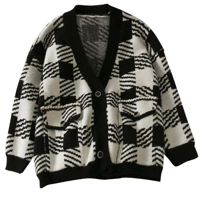 New Plaid loose and thin two button medium and long wool clothes 1831