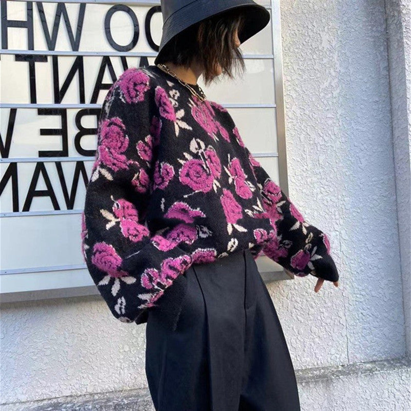 New, rose flower pullovers, loose, warm vintage knits 1436