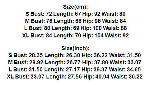 XL Bust: 84 Length: 70 Hip: 104 Waist: 92