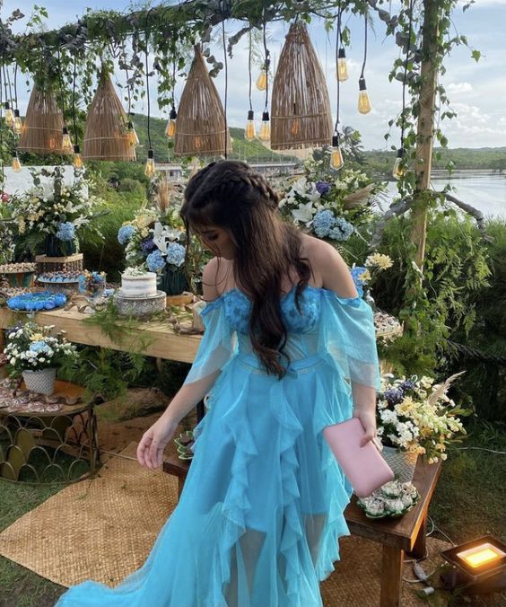 Off The Shoulder Blue Long Prom Dress,Charming Blue Evening Dress fg3951