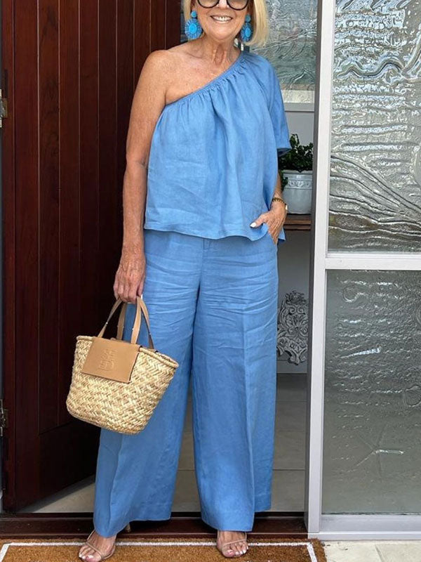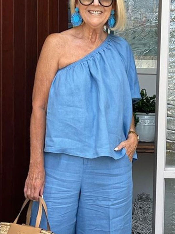 One Shoulder Cotton Linen Ladies Suits