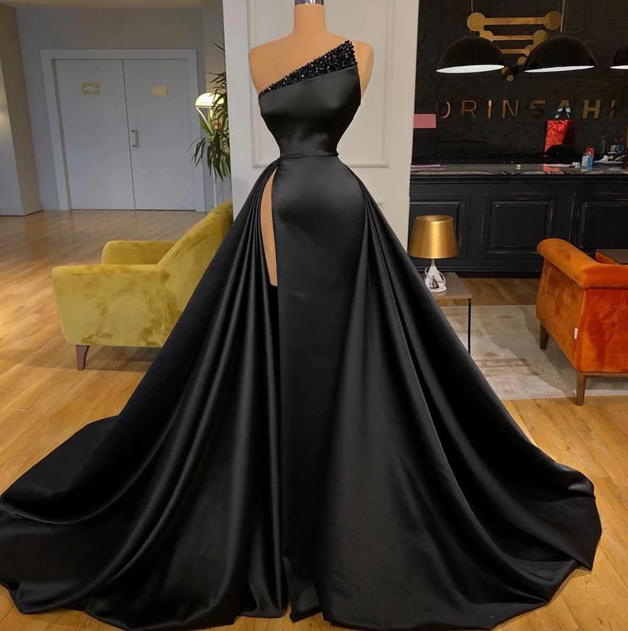one shoulder prom dresses, sequins prom dresses, beaded prom dresses SH457