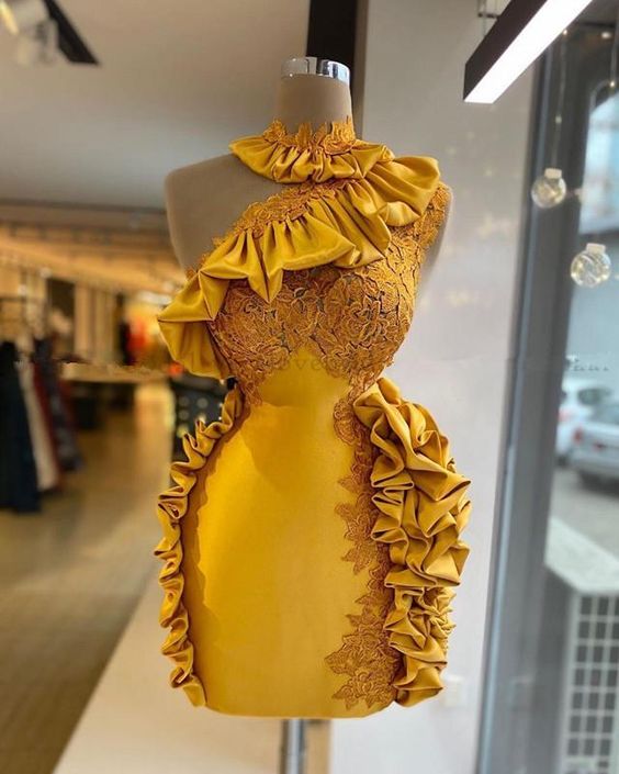 One Shoulder Ruffles Short homecoming Dress vestidos de Cocktail Real Images Knee Length African Girl Party Gowns cg23520
