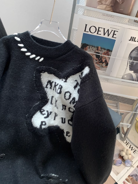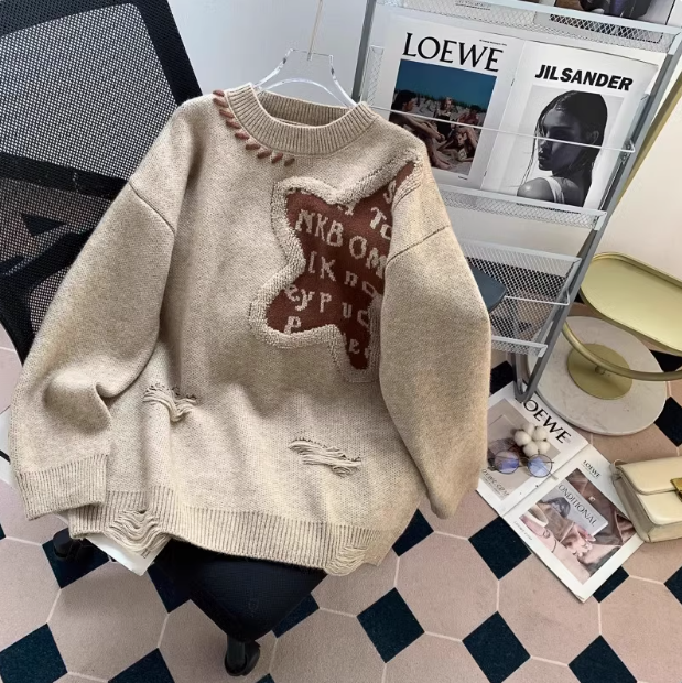 Oversize retro long sleeve round neck pullover sweater ED0541