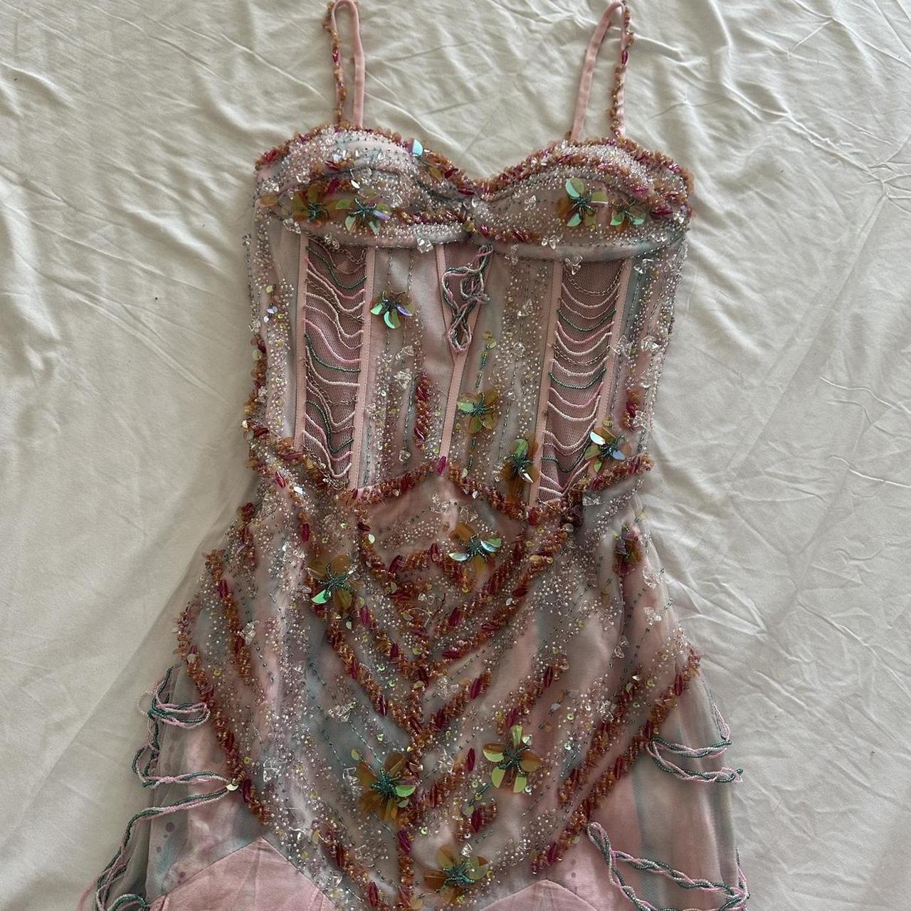 Pale Pink and Blue Flowing Vintage Fashion Mermaid Beaded Bodice Beaded with Sequins Beautiful Unique Glitter Elegant Long Chiffon Tulle Ball Gown Evening Gown Party Dress Prom Gown gh3881