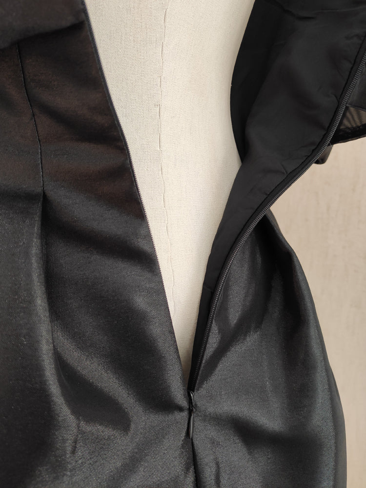 Black A-line off-the-shoulder tulle satin short prom dress, pink homecoming dress ED01054