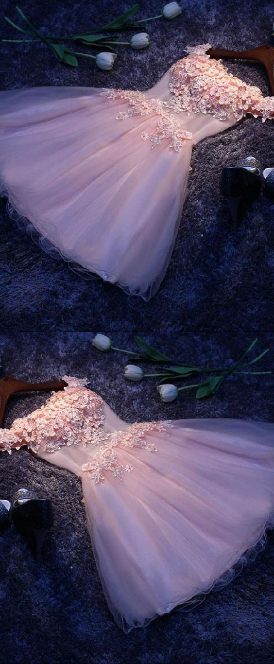 Pink A Line Tulle Lace Short Dress, Homecoming Dress cg1728