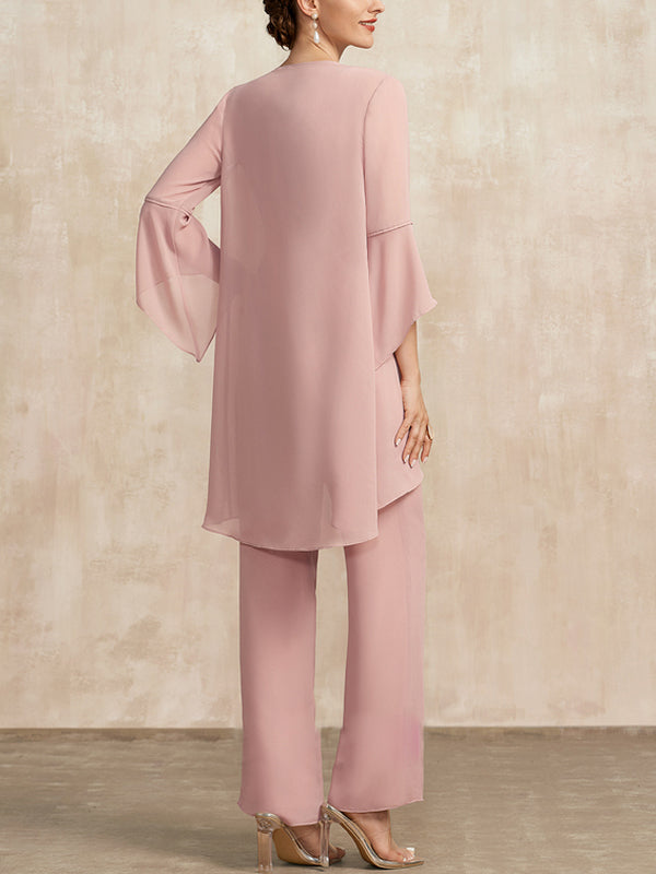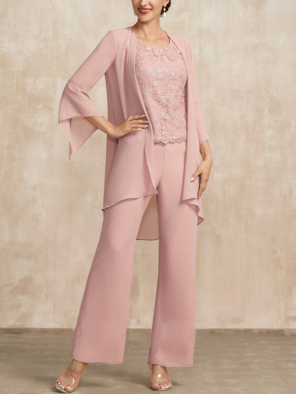 Pink Chiffon Lace Mother Bride Dress Three Piece Set