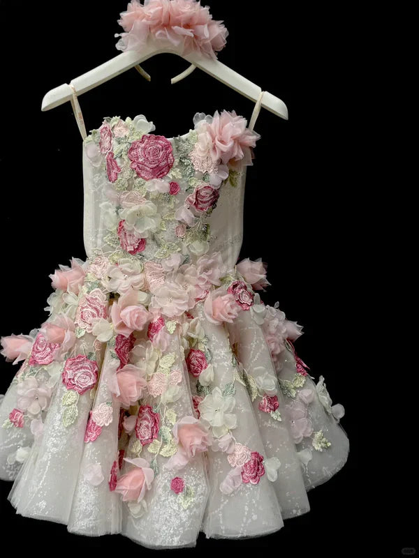Pink Flower A Line Sweetheart Neck Sequin Tulle Mini Homecoming Dress Cocktail Dress SH3699