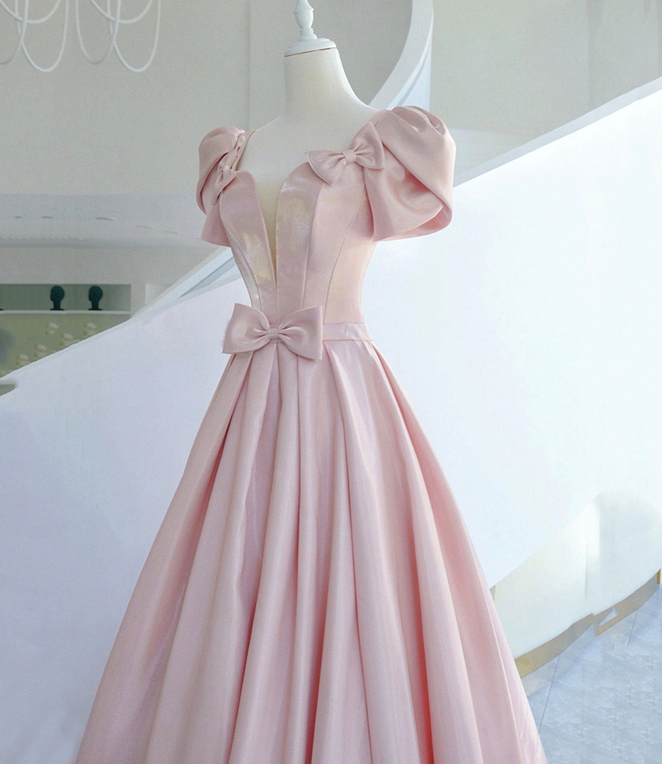 Pink satin long prom dress pink evening dress