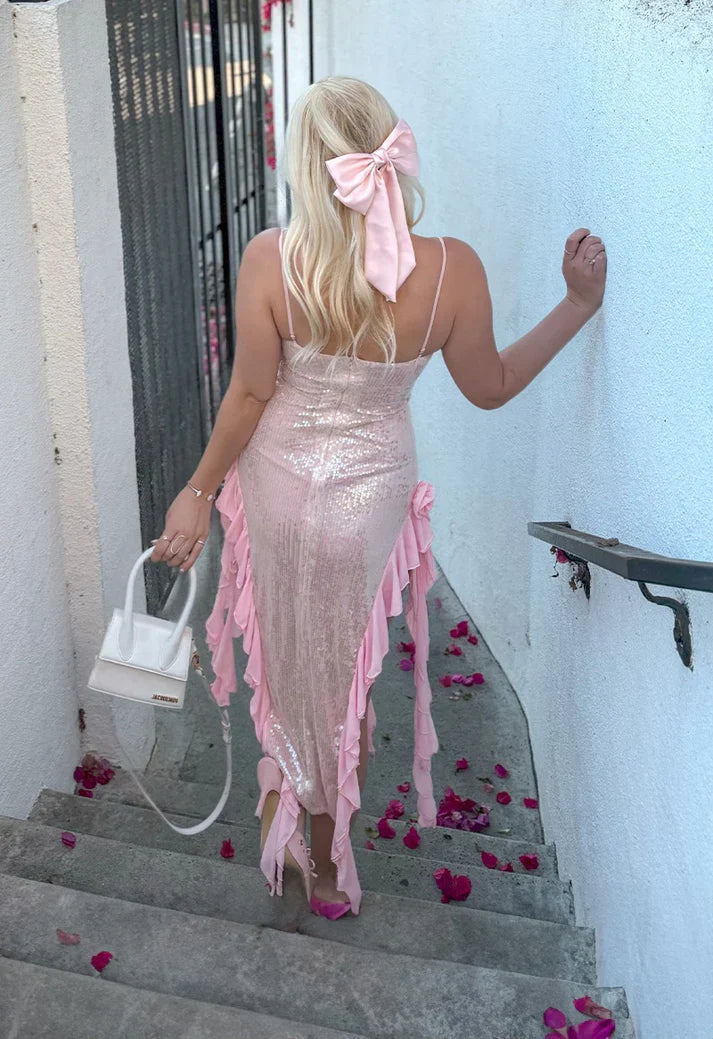 Pink Sheath Spaghetti Ruffle Sequin Homecoming Dress Evening Dress SH1841